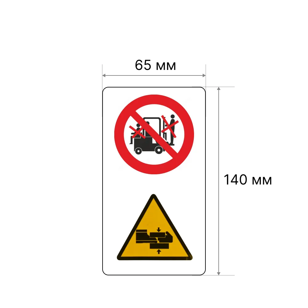 Стикер безопасности на мачту погрузчика «Перевозка, подъем людей на погрузчике запрещены» и «Возможно защемление пальцев», 65х140 мм На клейкой основе