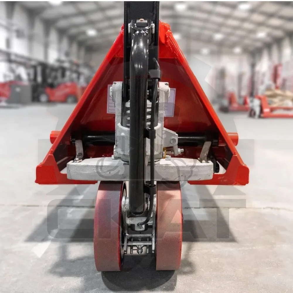 — спаренные подвилочне колеса (преодоление неровностей поверхности пола, снимают нагрузку с вил и повышают в 2а раза срок службы тележки, также улучшают качение тележки, снижая степень усталости операторов)