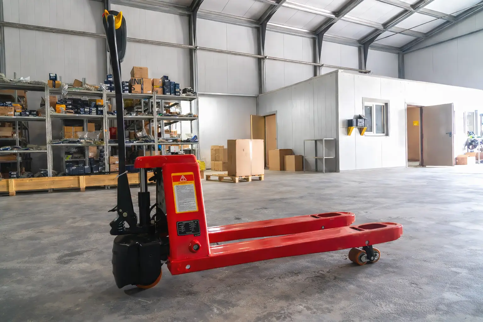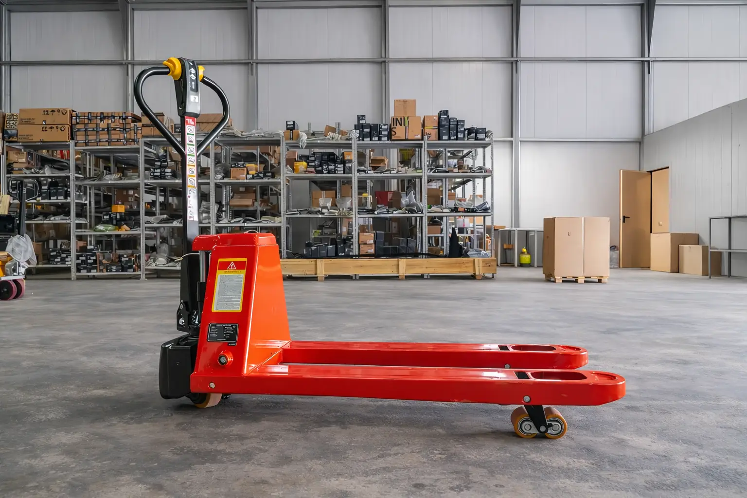 Компактная и легкая электрическая тележка размером с гидравлическую (всего на 32мм длиннее) с функционалом полноценной электротелеги (электроподъем и опускание, электропривод).